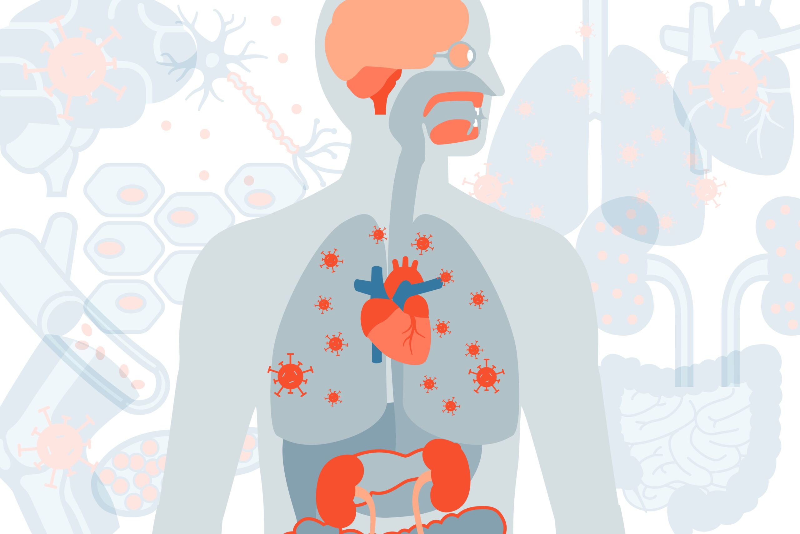 Myocarditis– Myocarditis in simple terms is inflammation of the heart. This complication is seen in various other viral infections. This complication is also common in drug reactions. The inflammation reduces the ability of the heart to pump blood. Common myocarditis symptoms are- chest pain, fatigue, swelling of the legs, ankles, and feet, palpitations, shortness of breath, at rest or during activity, light-headedness or feeling like you might faint, Flu-like symptoms such as headache, body aches, joint pain, and fever or sore throat. The RNA of the virus was found in the heart tissues in various cases suggesting the virus possesses cardiac tropism. The clinical presentation of myocarditis varies from a case-to-case basis. Some survivors may present relatively mild symptoms such as fatigue and dyspnea. Some report chest pain and tightening of the chest. Many patients do deteriorate and show signs of heart attack and stroke. Some arguments have been made that 7% of the total number of deaths in Covid-19 infection is due to myocarditis. Myocarditis is a heart problem that is showing up primarily in younger survivors and can cause serious complications.